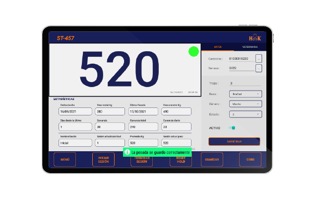 This indicator allows you to record up to 6,000 weighings quickly and accurately, storing critical information for livestock monitoring. Each record includes the number of weighings performed, the condition of the animal, the trailer number, the batch number, the date and time of each weighing and customized observations. Easily access totals and reports organized by: